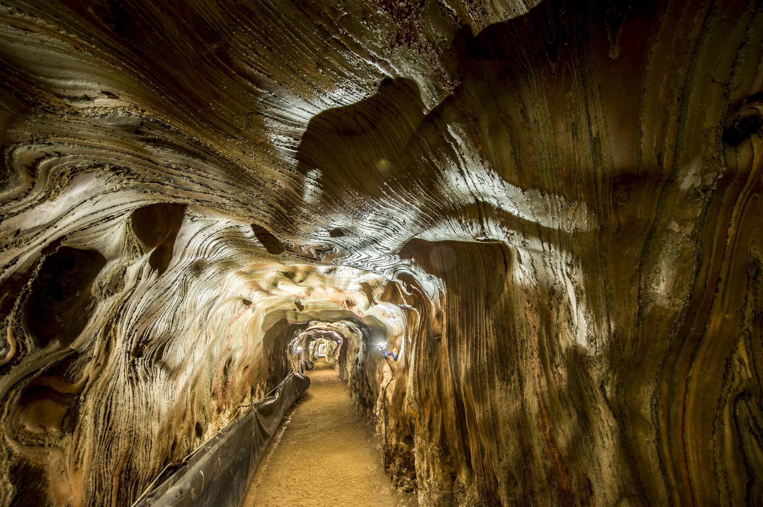 - Le revêtement de l’intérieur des galeries de la Montagne de sel est naturel et présente quelques dénivelés.